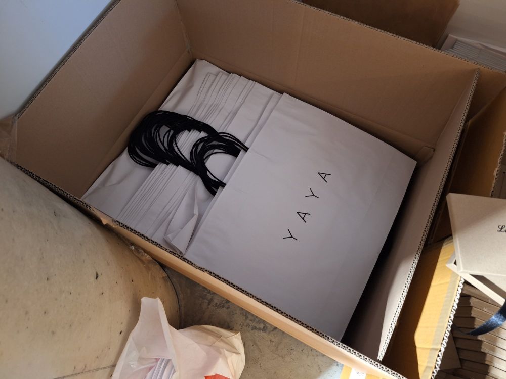 Sacs en papier de différentes tailles +/-150pcs.+100pcs.petites boîtes cadeaux en carton