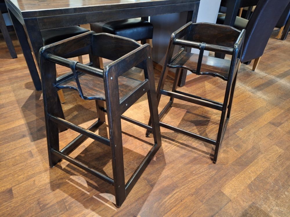 57 x eetkamerstoelen zwart imitatie leder met houten poten