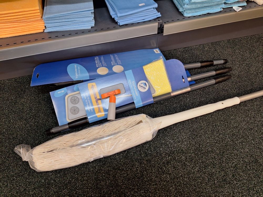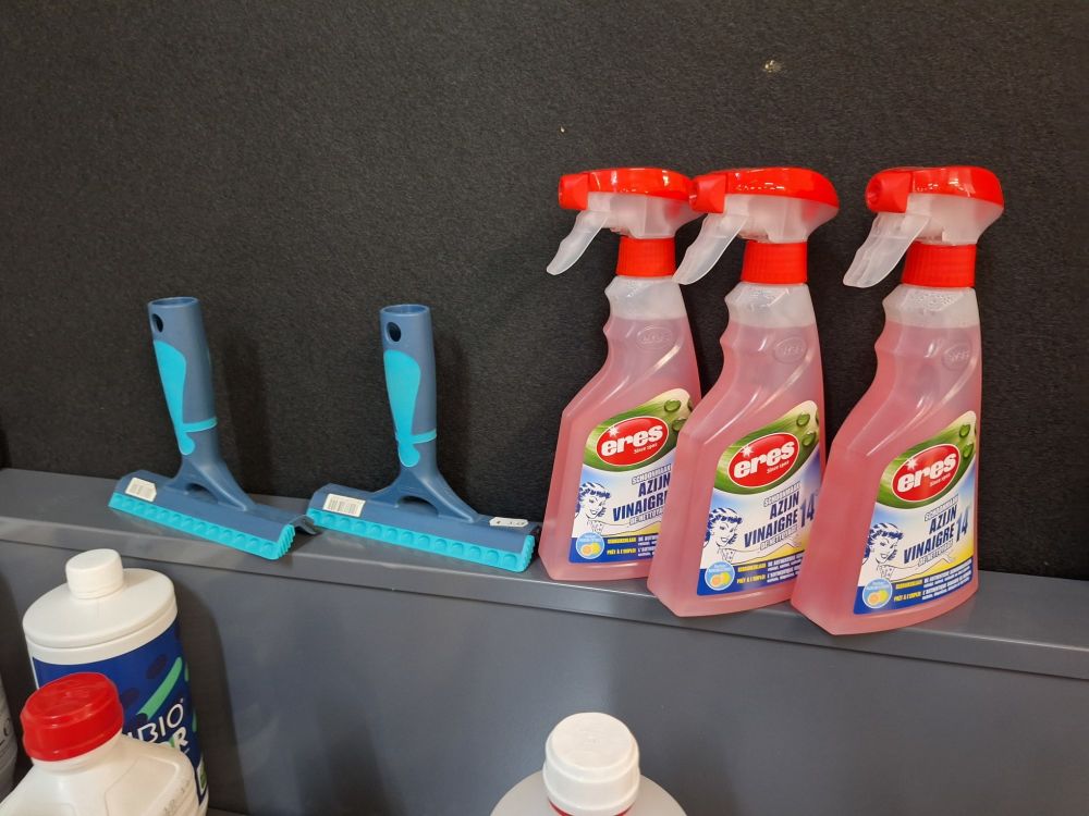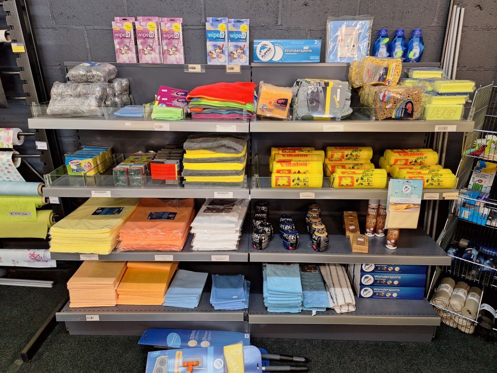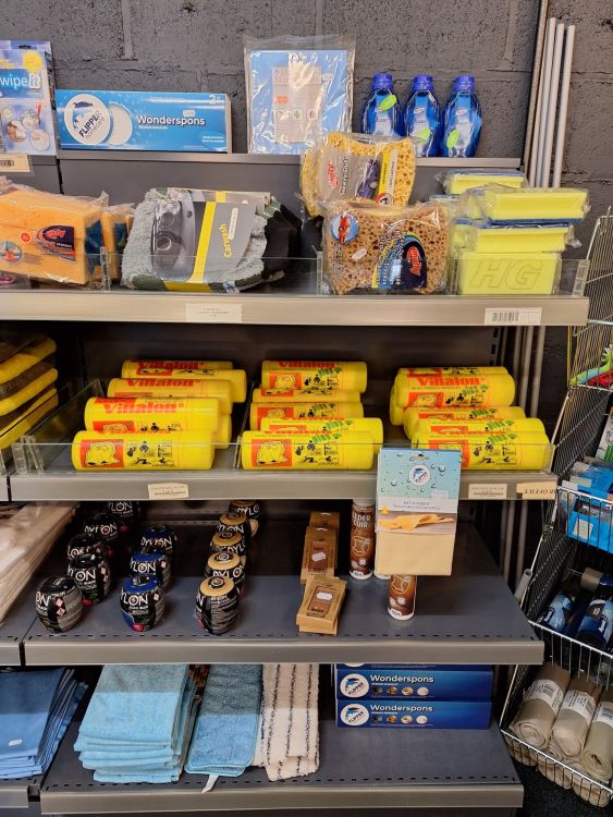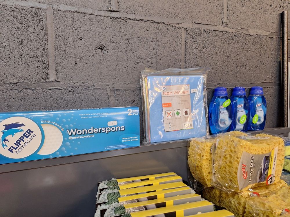 +/- 250st.diverse poetsproducten,zeep,zakken,doeken en chemische producten