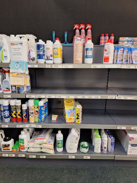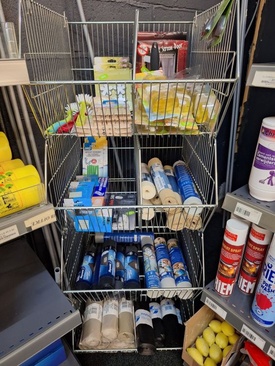 | Nom: | Lot Inhoud 7 lm winkelrek (poetsproducten,zeep,zakken,doeken) |