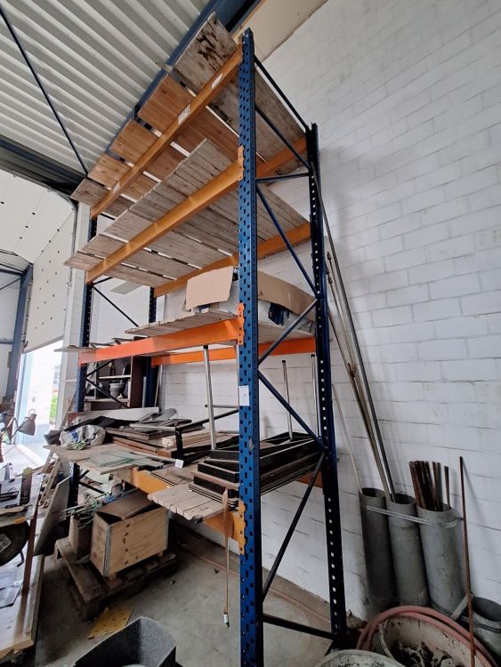 | Nom: | Magazijnstelling / palletstelling (oranje balken + blauwe staanders) |