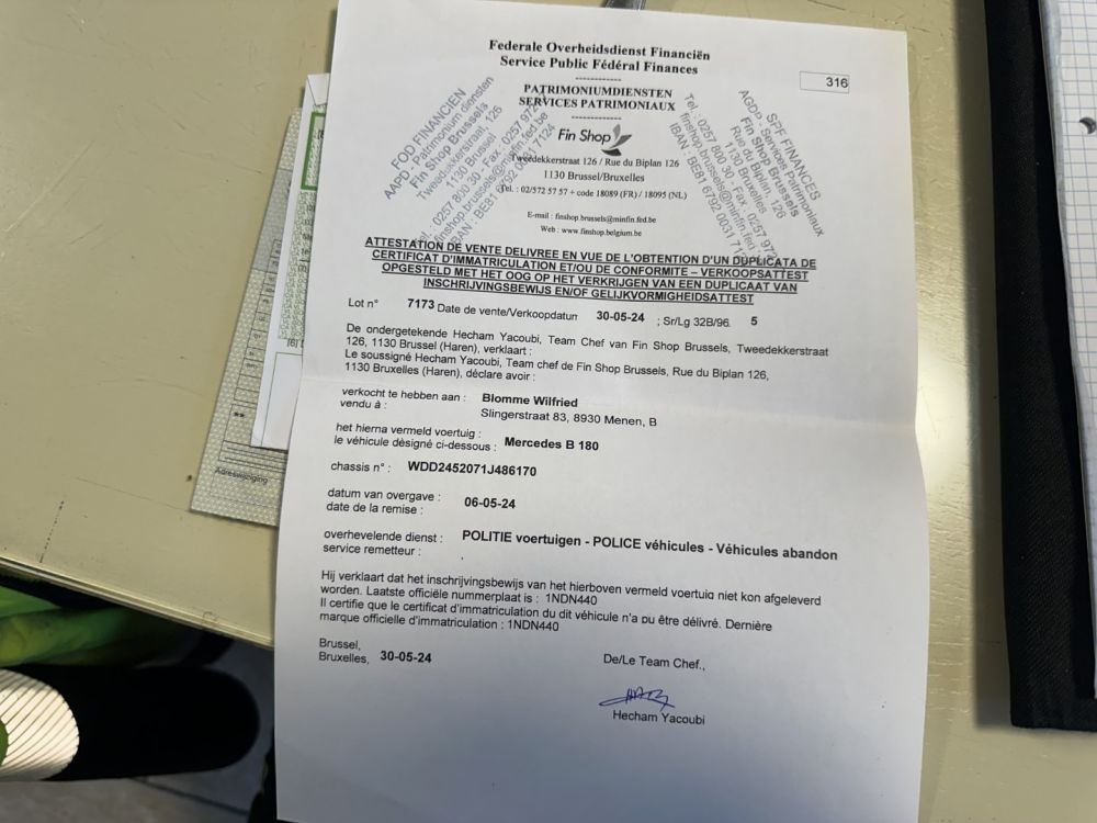 Mercedes B 180 CDI eerste maal in gebruik 22/01/2010 dieselmotor 1991 cc 80kw km-stand op laatste schouwingsbewijs 216142 km. Aanvoerpomp diesel te vervangen. Boorddocumenten ok.