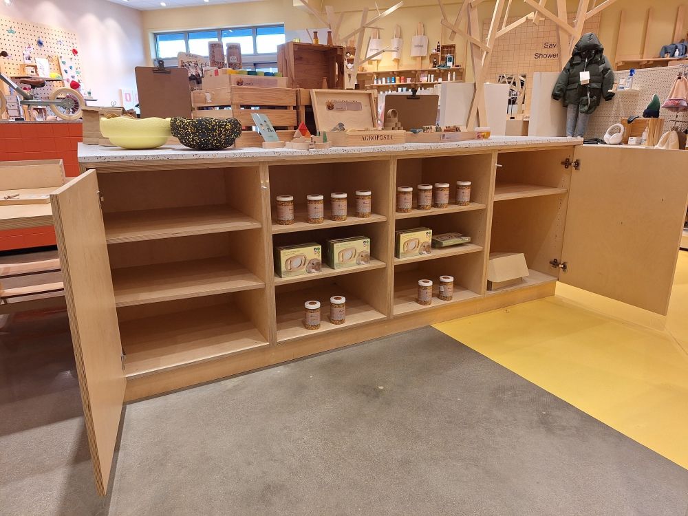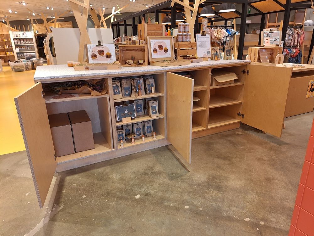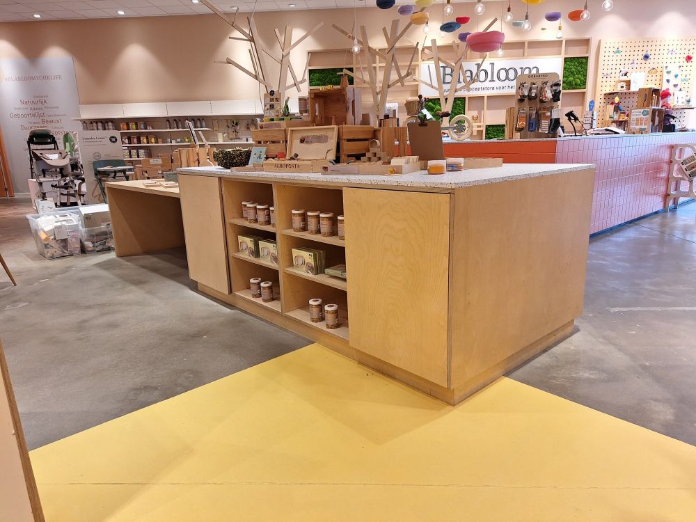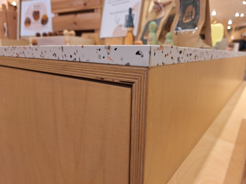 | Nom: | Modulair Presentatie-eiland met Terrazzo-look (Berken Multiplex) |