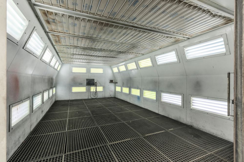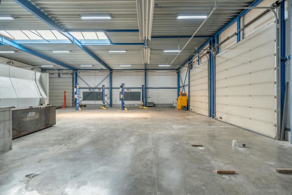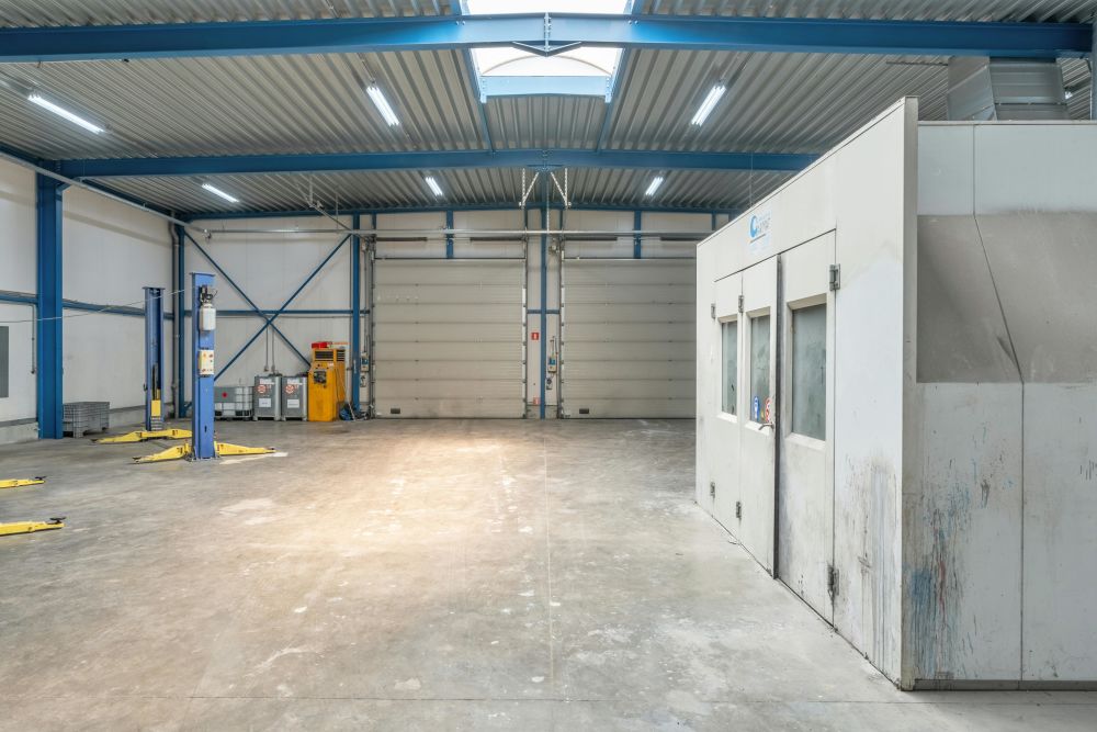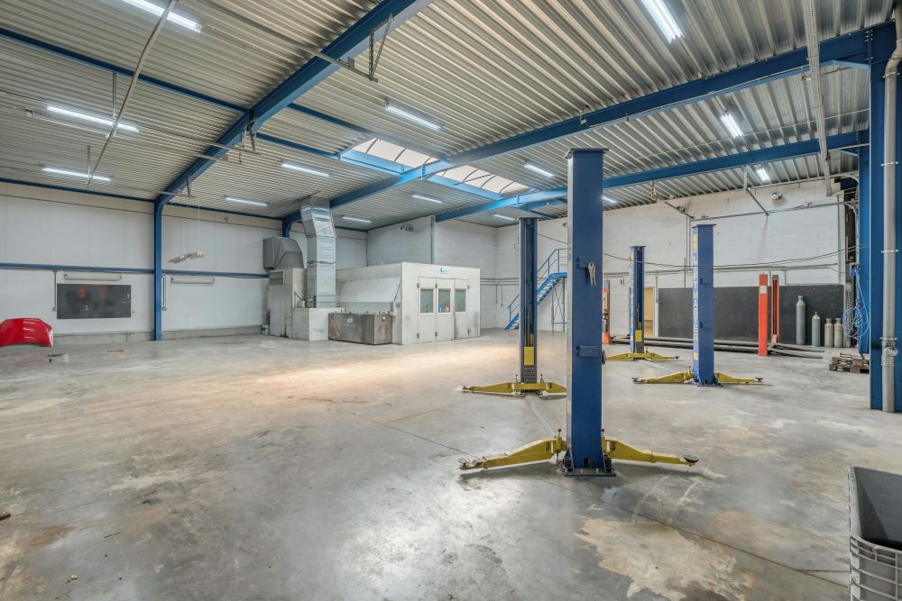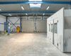 Deze hal beschikt over 3 sectionale poorten en is nog uitgerust met een spuitcabine en hefbruggen.