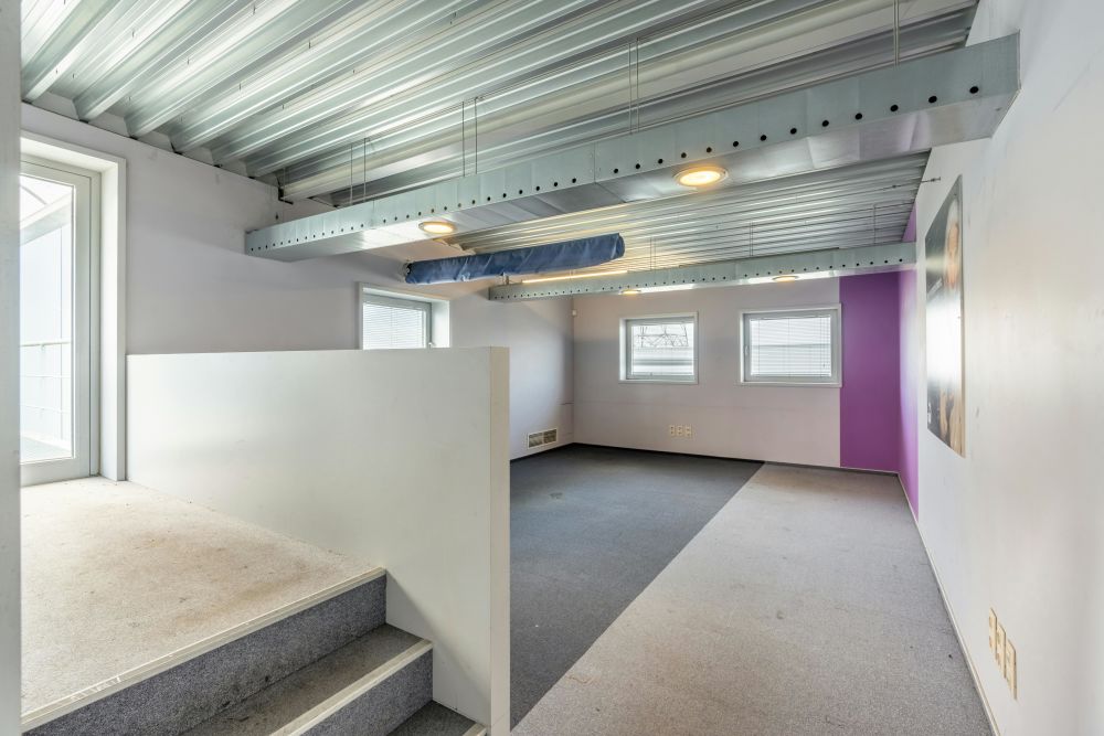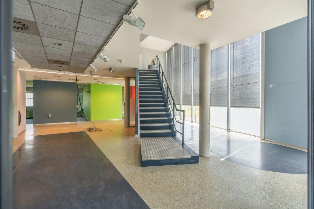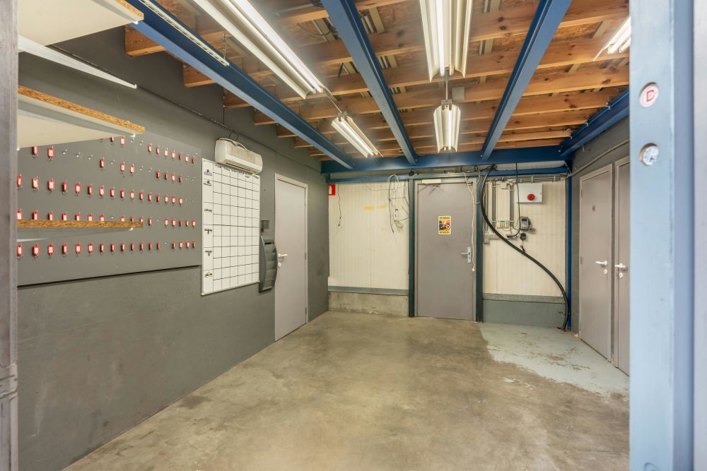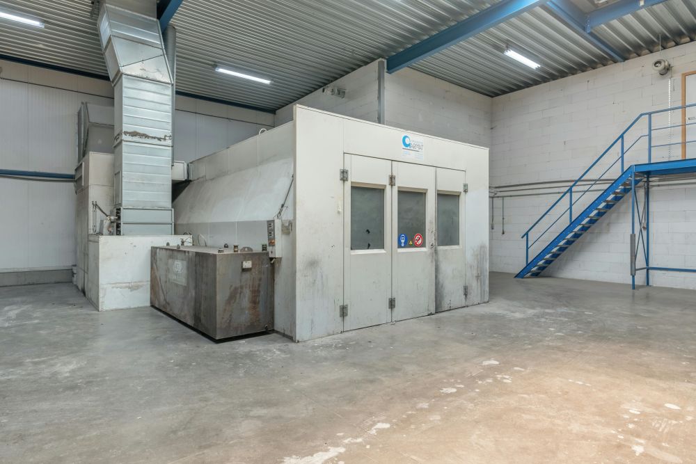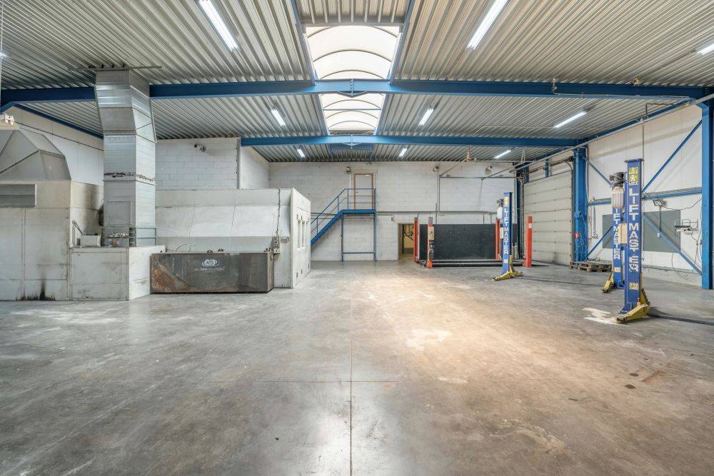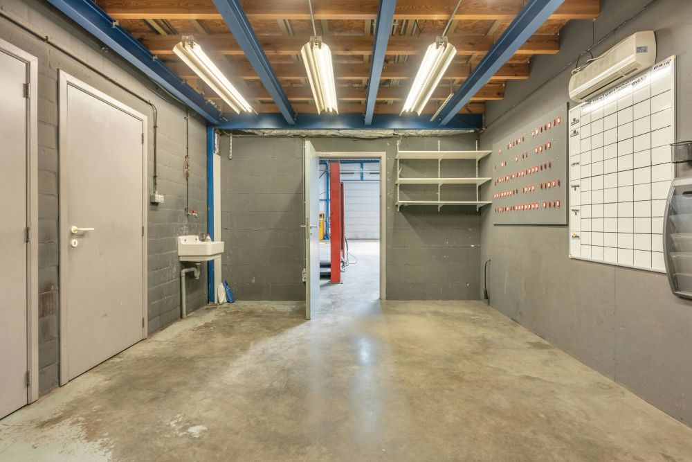 * De bedrijfshal betreft een werkplaats (500m²) met een mezzanine omvattende een werkplaats, kantoren (125m²), sociale ruimtes, opslag en sanitair.