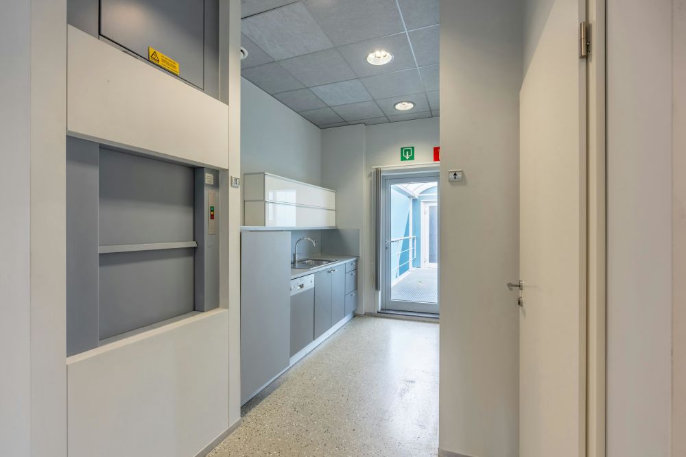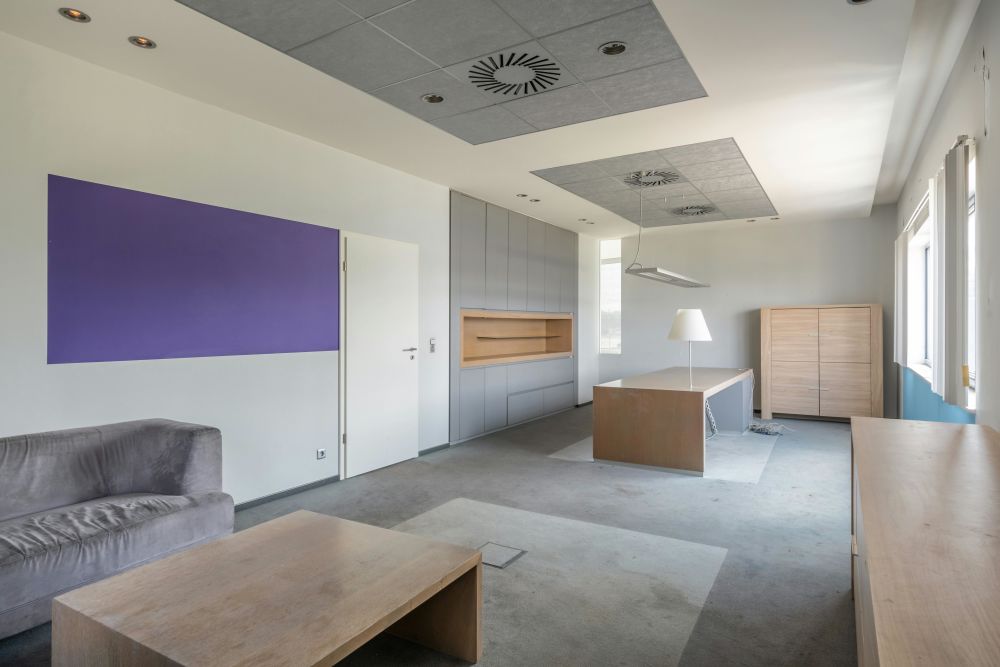 * Het administratief gebouw (grondoppervlakte 275m², totaal beschikbaar 450m²) beschikt over 2 verdiepingen diverse kantoren, sanitair en bergingen.