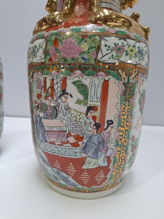 | Nom: | Paar Grote Chinese 'Rose Medallion' Vazen – 2e helft 20e eeuw |