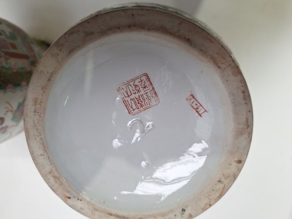 Gemerkt: Beide vazen zijn aan de onderzijde voorzien van rode apocriefe zegelmerken (Qing dynastie: Qianlong en Guangxu).