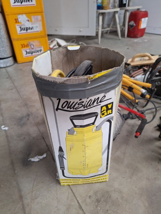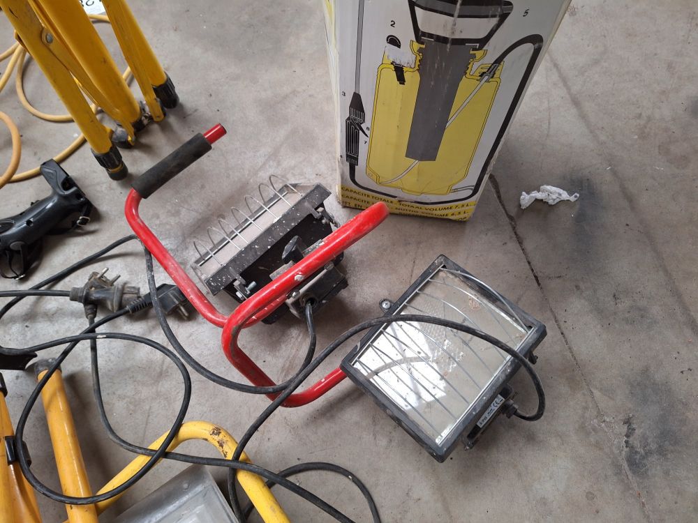 Drukspuit,motorsteun,2 verlengsnoeren,2 statieven,5 werfverlichtingen en 4 spanratels