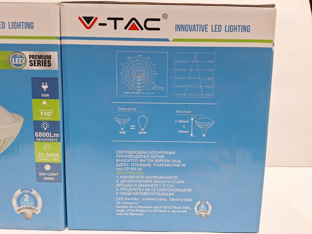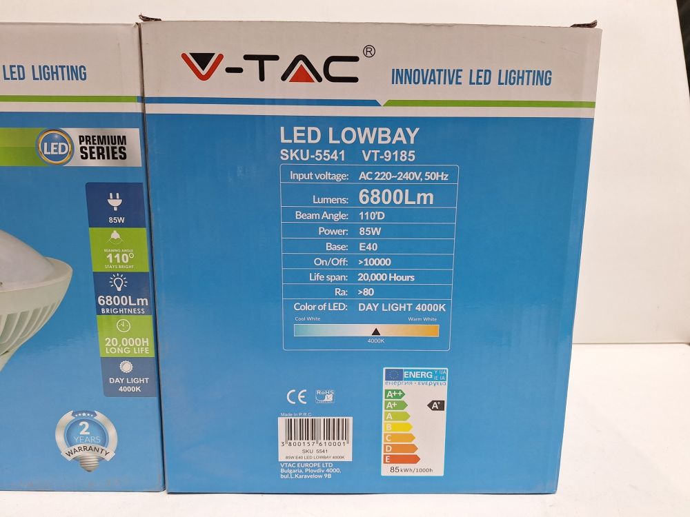 | Nom: | Set van 2x V-TAC LED Lowbay Industriële Lampen - 85W (6800lm) - E40 |