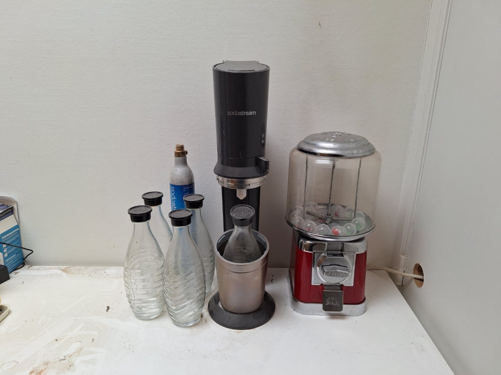 Nom: | SodaStream met glazen flessen + kauwgomballenautomaat |
