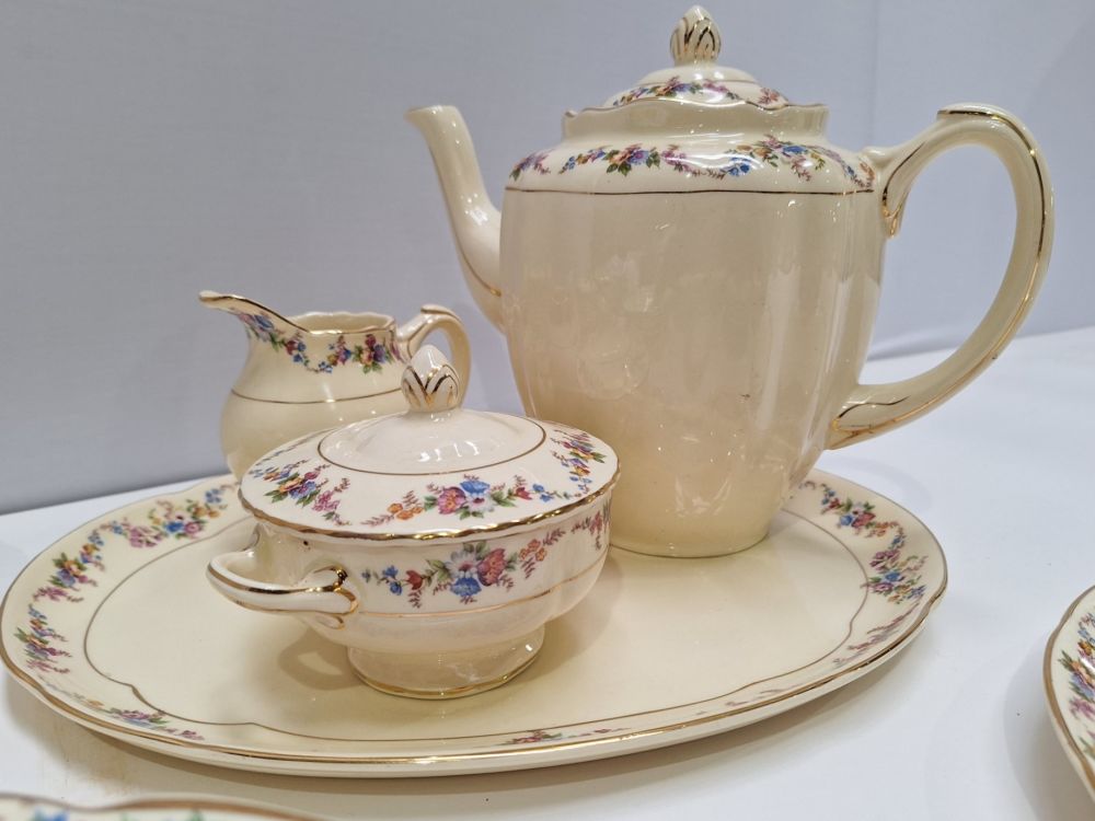 | Nom: | Uitgebreid antiek koffie- en dinervies – P.Z. Gouda (Plazuid) – Decor ‘Viooltjes’ |