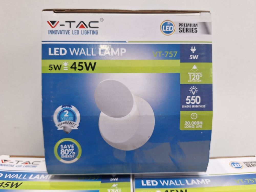 | Nom: | V-TAC VT-757 Premium Series LED Wandlamp 5W Wit - Set van 5 stuks |