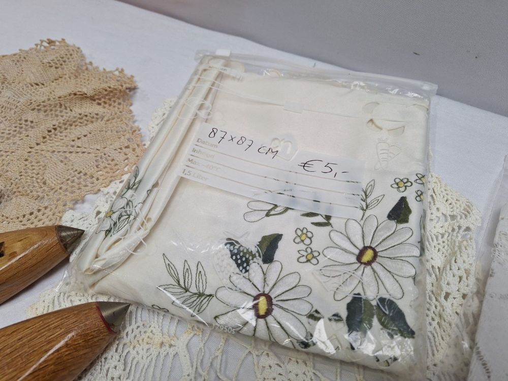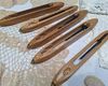 | Nom: | Verzameling handgemaakte textielstukken en weefspoelen |