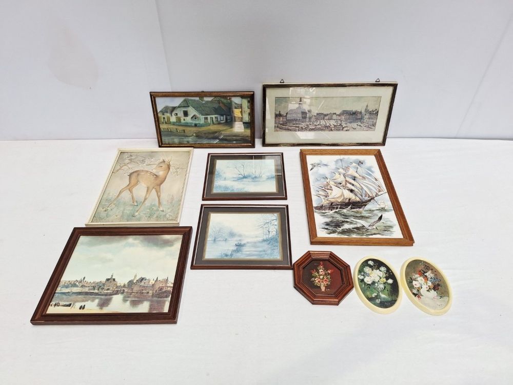 | Nom: | Verzameling van 10 ingelijste kunstwerken in diverse formaten en stijlen |