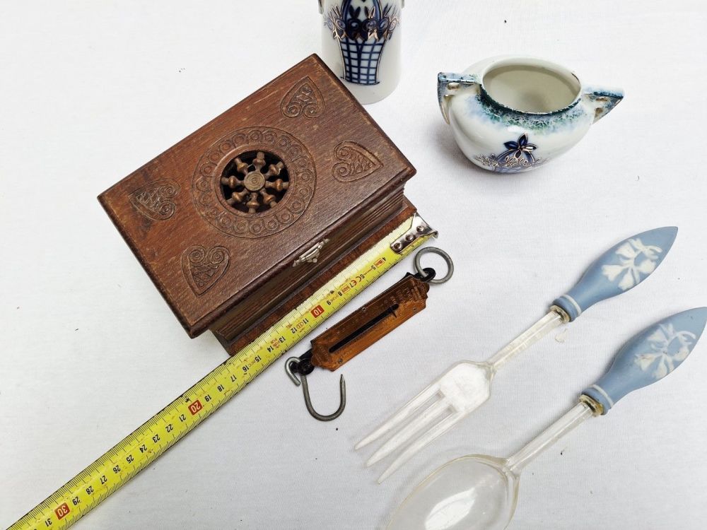| Nom: | Vintage decoratief lot – hout, keramiek & metaal met bloemmotief |