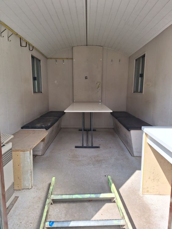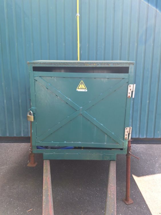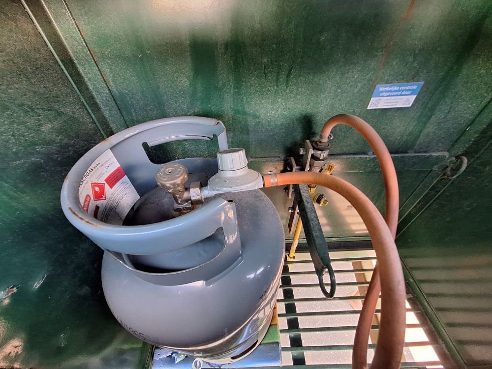 Gaskast: Externe metalen gaskast op de dissel. Inclusief gasfles (inhoud onbekend), voorzien van drukregelaar en aangesloten op de interne leidingen. De kast is afsluitbaar met een hangslot.