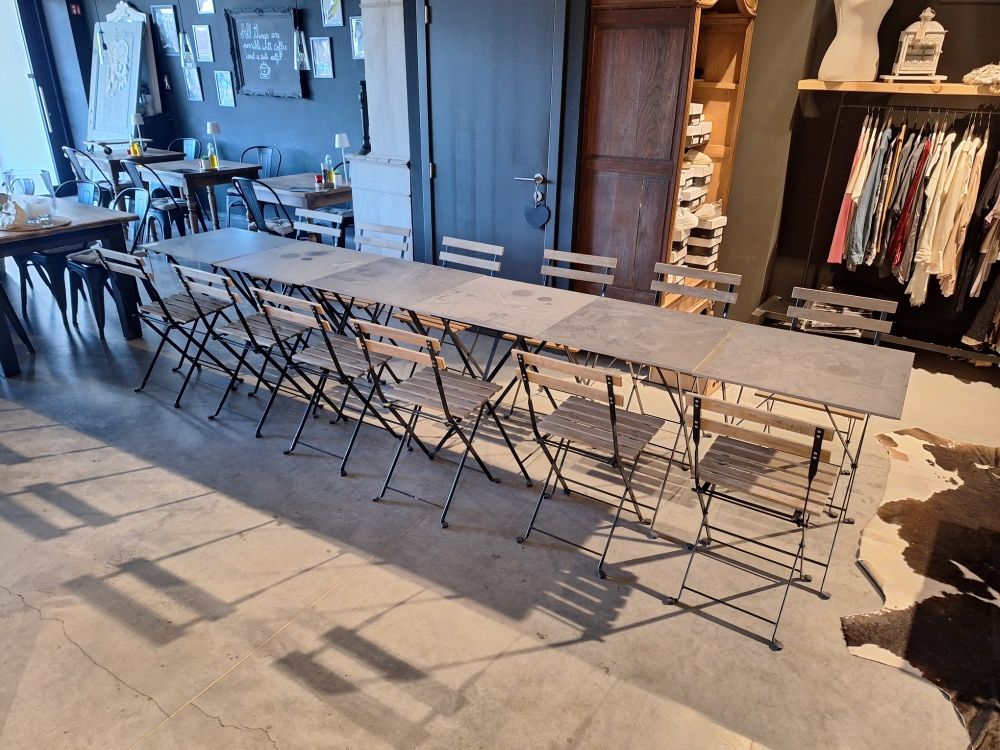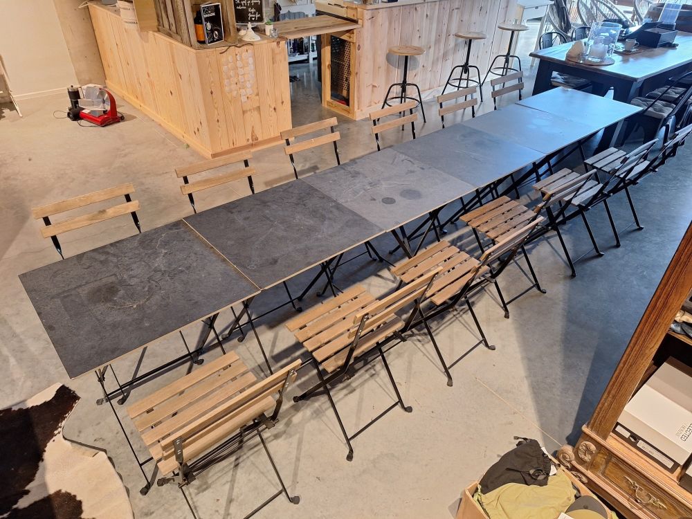 | Naam: | 12 inklapbare bistrotafels en 20 stoelen |