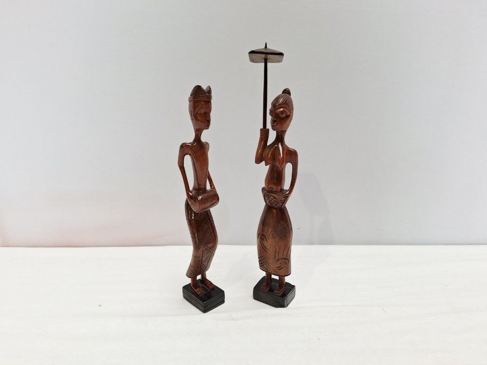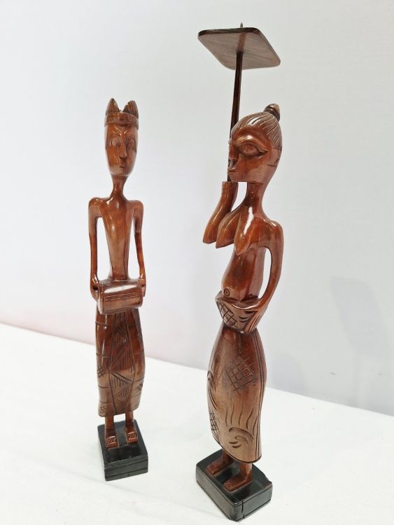 | Naam: | 2 houten figuren – handgesneden, etnisch decoratief |