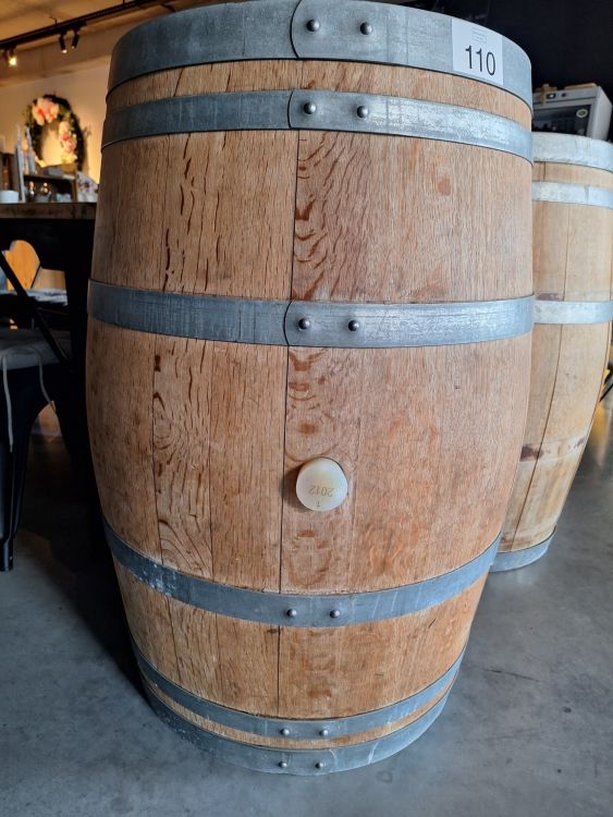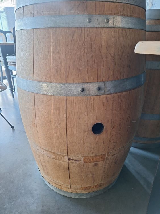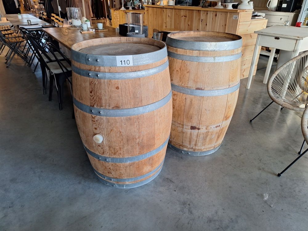 2 x houten wijnvaten afm. hoogte 97cm en diameter 58cm