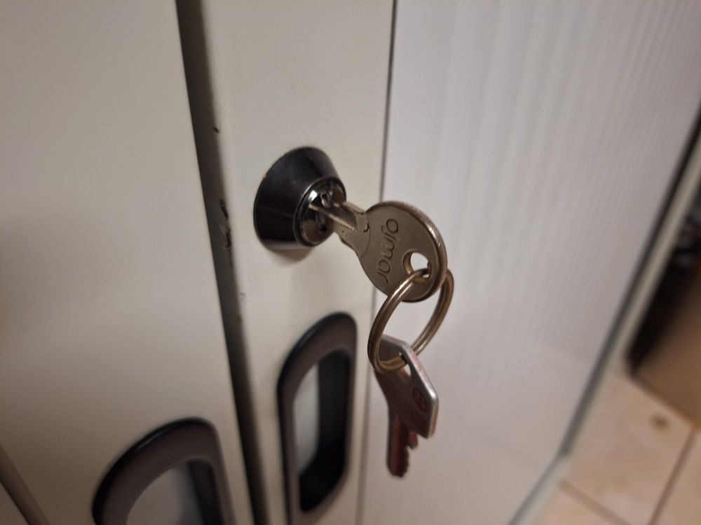 1 x metalen dossierkast met verticale lamellen deuren L120xB45xH134cm