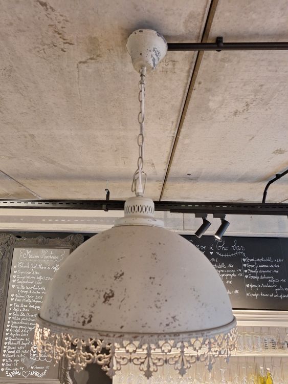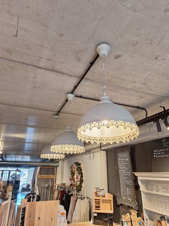 | Naam: | 3 wit metalen vintage hanglampen |