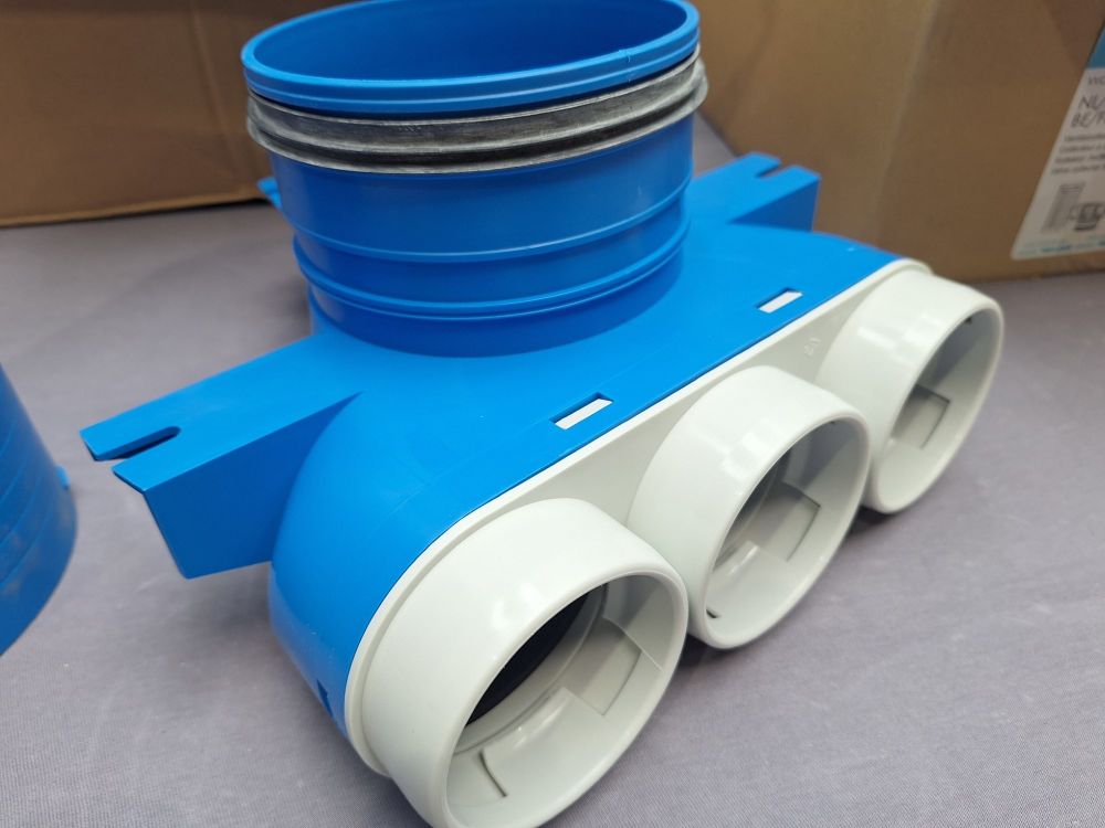 | Naam: | 3x Vent-Axia Uniflexplus+ Ø63 mm uitgangen, Ø125 mm ingang, hoogte 250 mm |