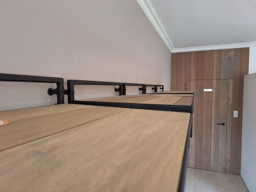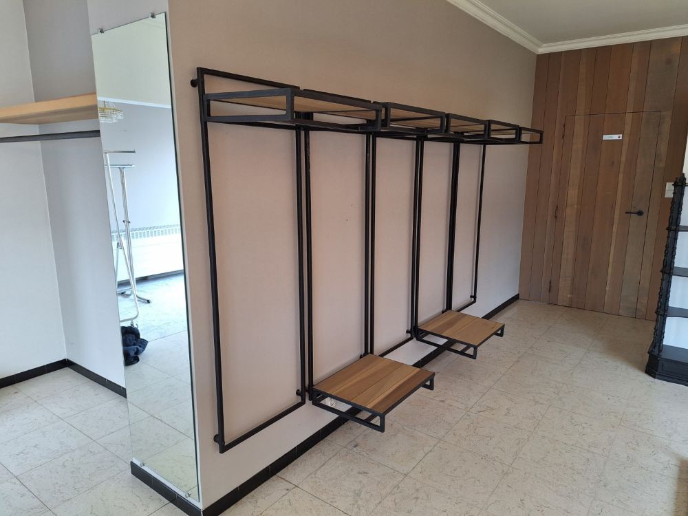 | Naam: | 5st.wandrekken zwart metaal met 7 houten leggers |