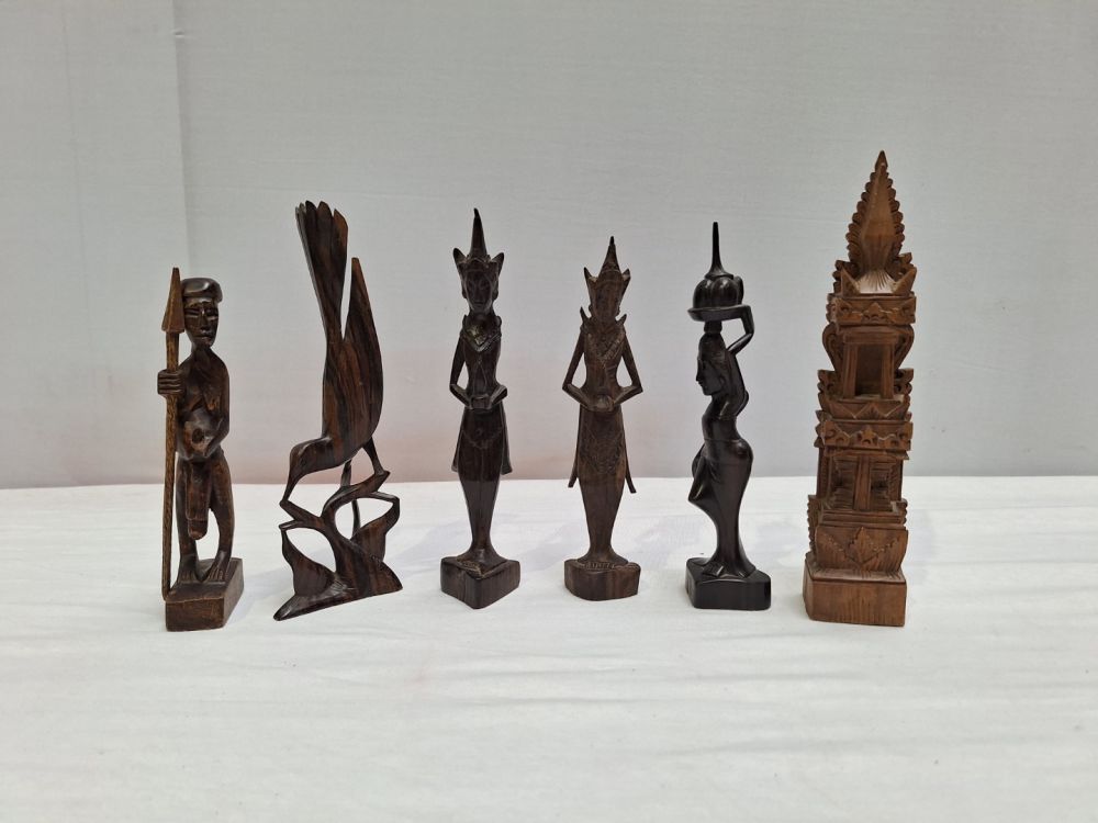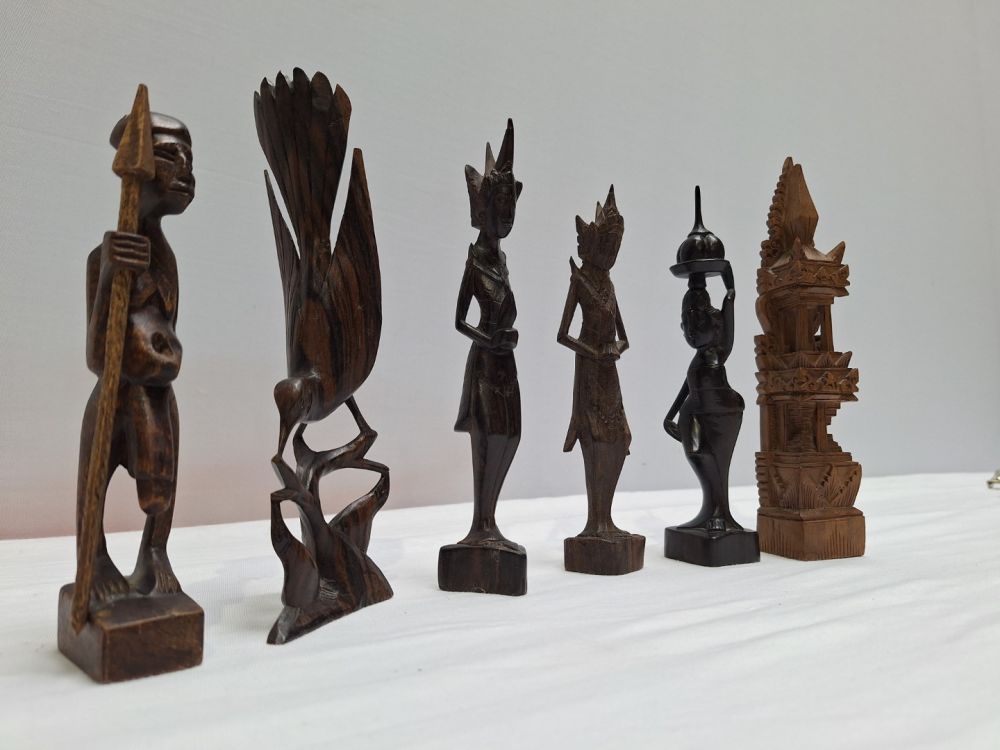 | Naam: | 6 handgesneden houten figuren (indisch,afrikaans) |