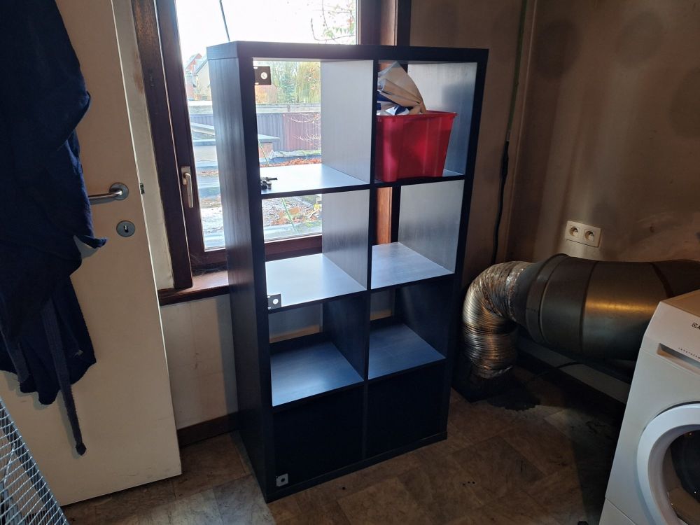 | Naam: | 8-vaks zwarte Ikea kast+metalen dressoir en 3 filmposters |