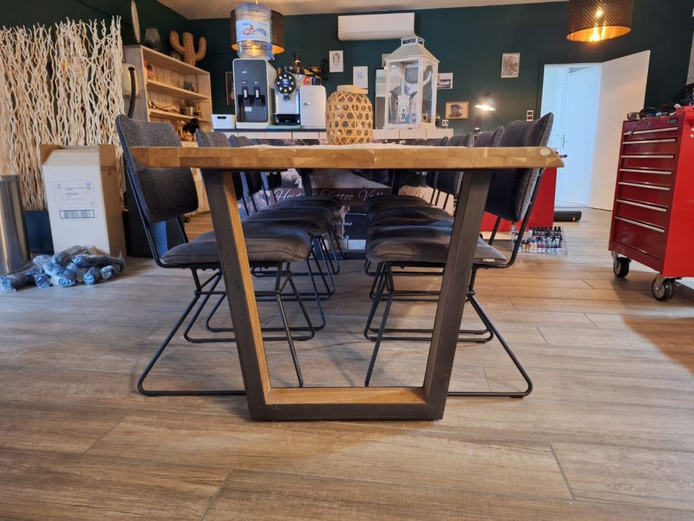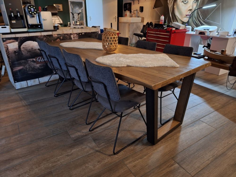 Naam: | Boomstamtafel massief van H&H met 8 stoelen van XOOON |