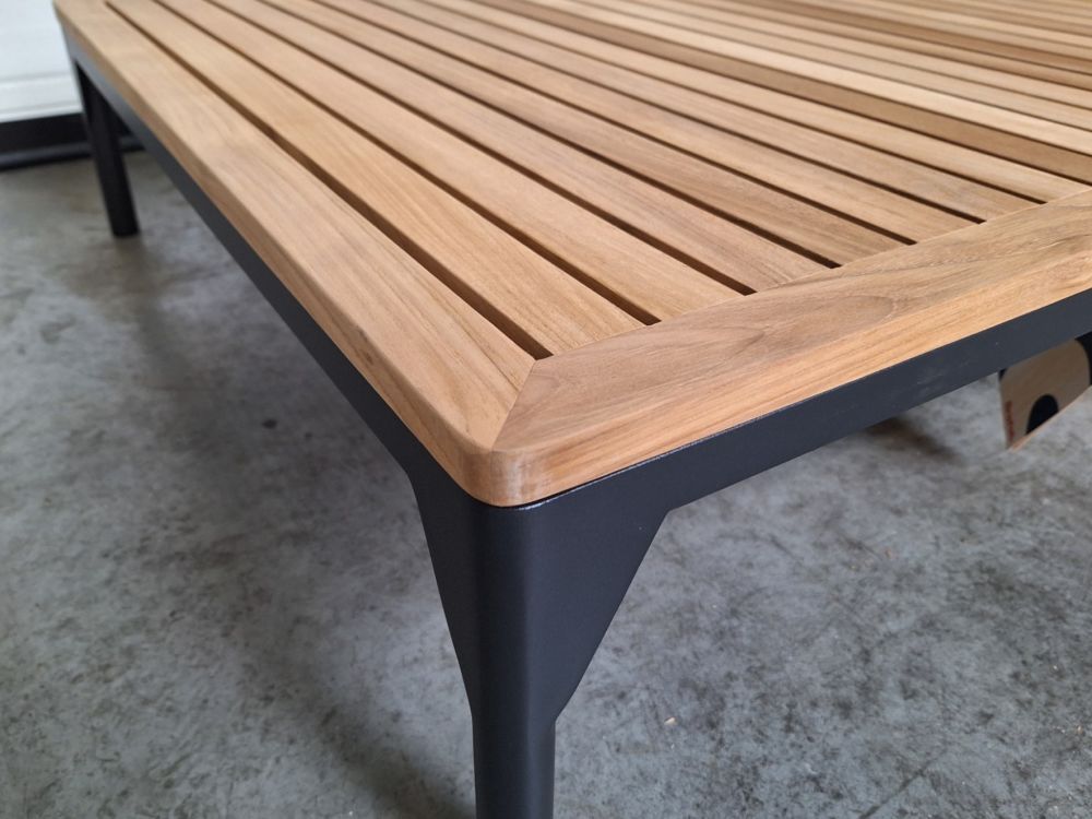 Design: Vierkant model met een lamel-structuur van teakhout, wat zorgt voor een natuurlijke en luxe uitstraling.