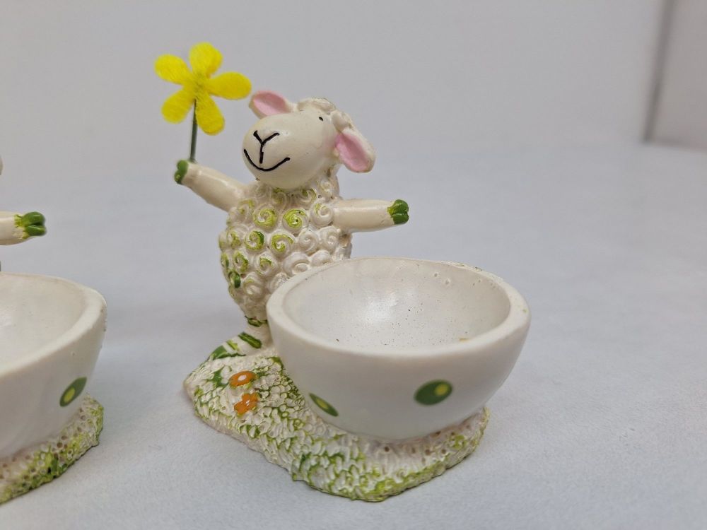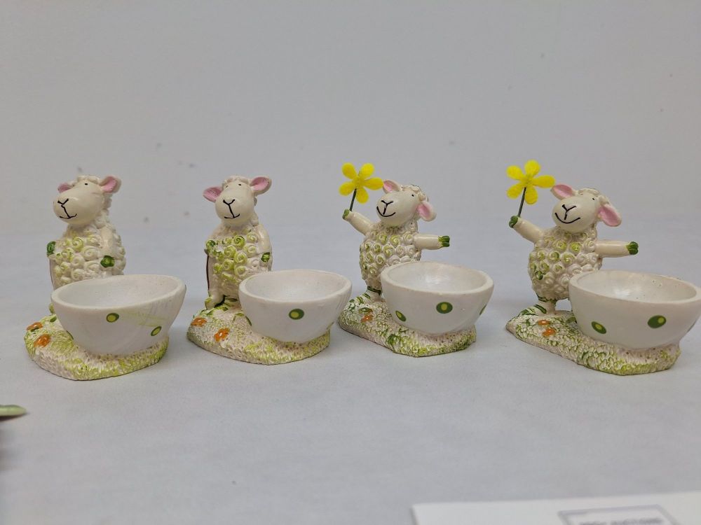 4 keramische eierdopjes( schaapjes met bloemetjes )
