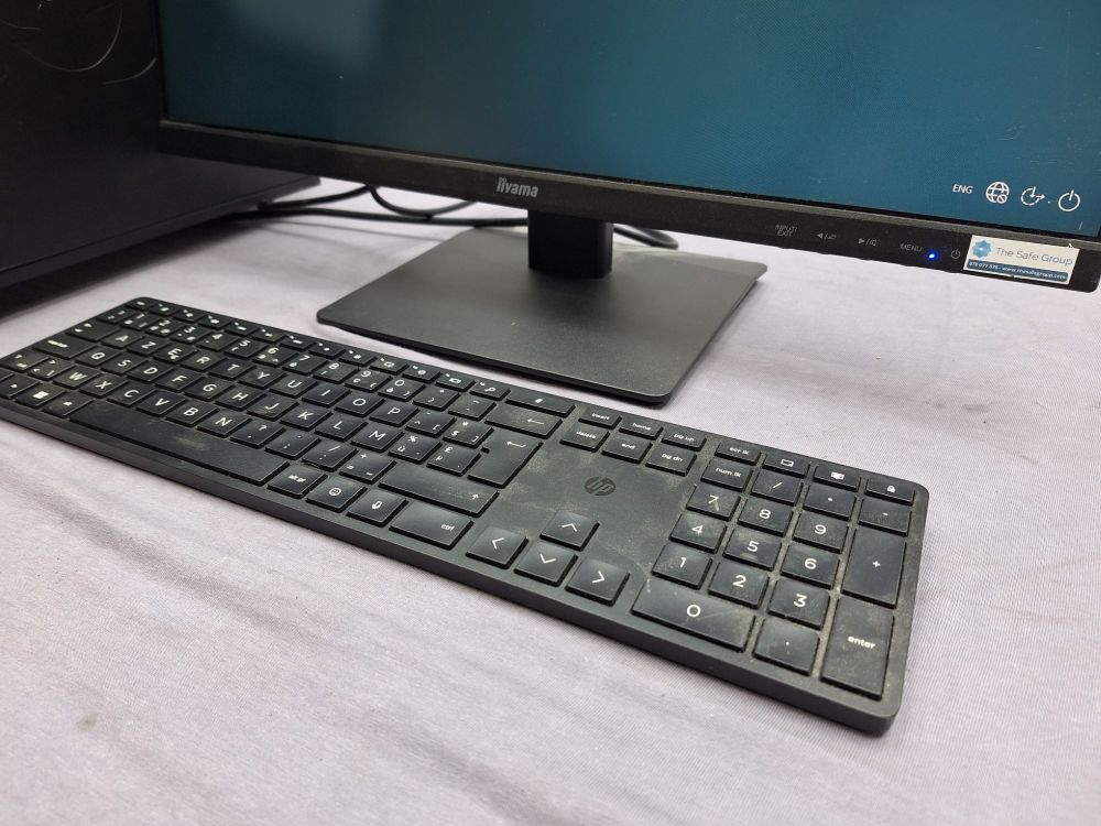 Opm:toetsenbord is draadloos(werking onbekend)kras op scherm,2 voetjes ontbreken onder pc en zonder muis.