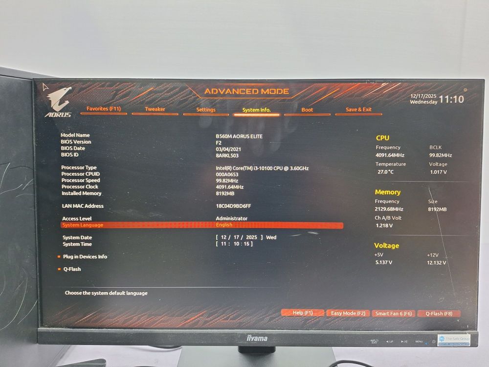 Pc desktop BIOS & Hardware Info (B560M AORUS ELITE Moederbord)