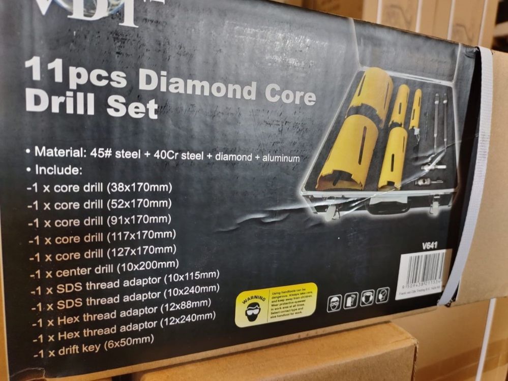 | Diamant kerborenset 11 delig, 38 tot en met 127mm diameter, incl hulpstukken, nieuw in setvige koffer |