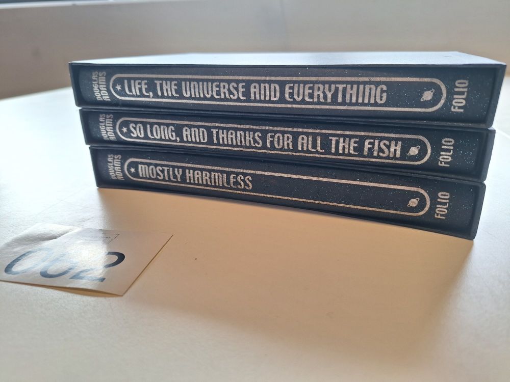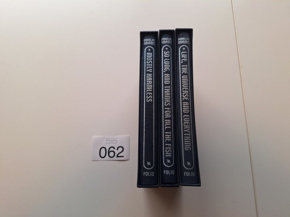 Mostly Harmless Alle drie in één originele Folio Society-slipcase, als onderdeel van de Hitchhiker's Guide to the Galaxy-reeks.