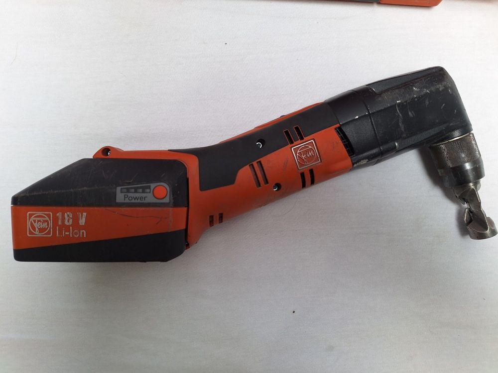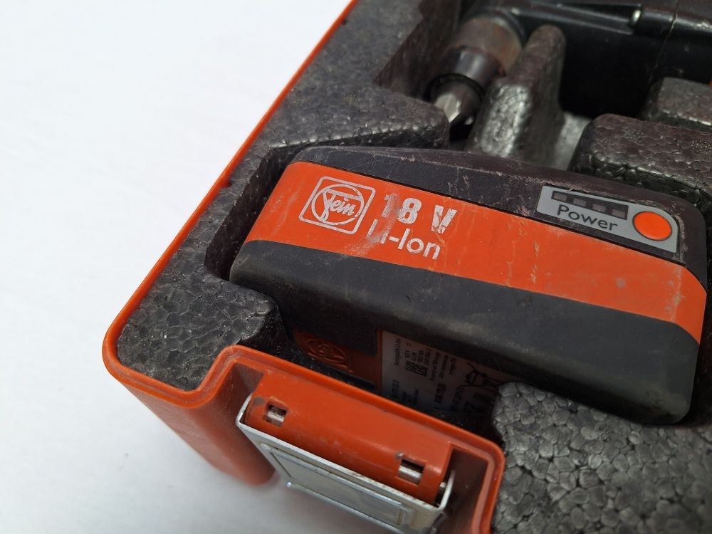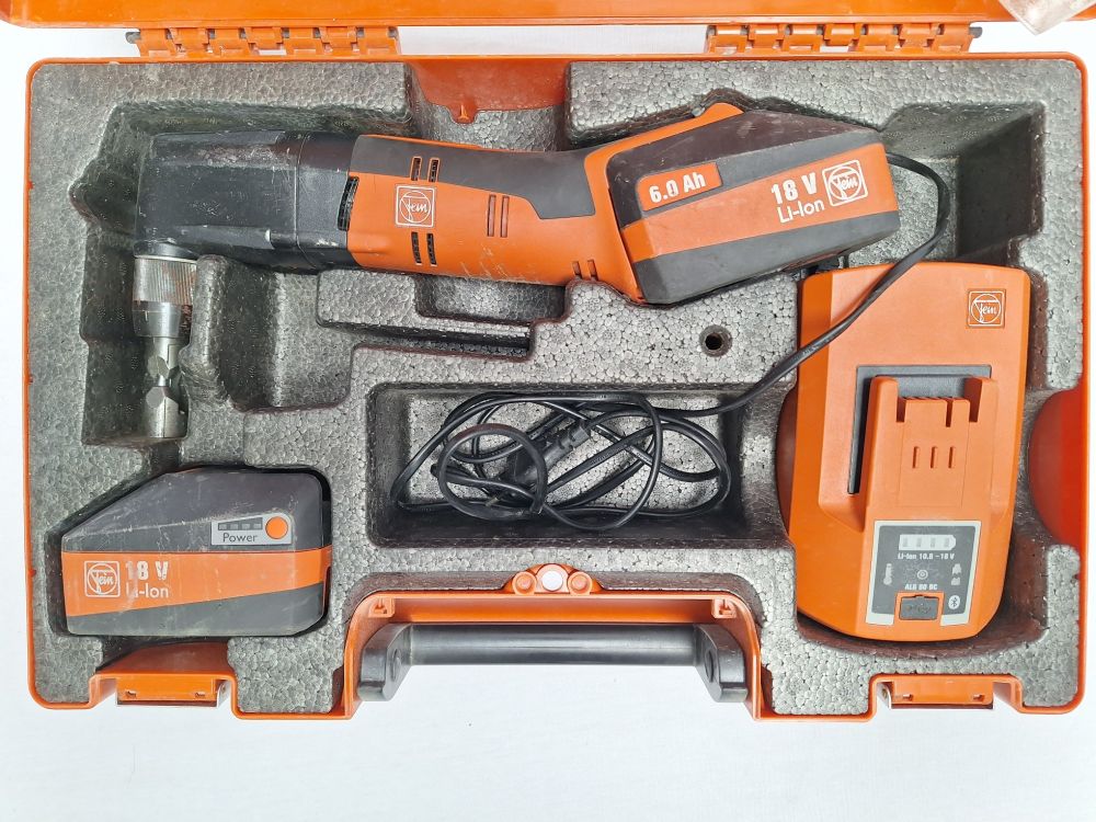 1x Fein 18V Li-ion accu (6.0 Ah — hoge capaciteit voor lange werktijd).