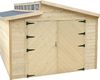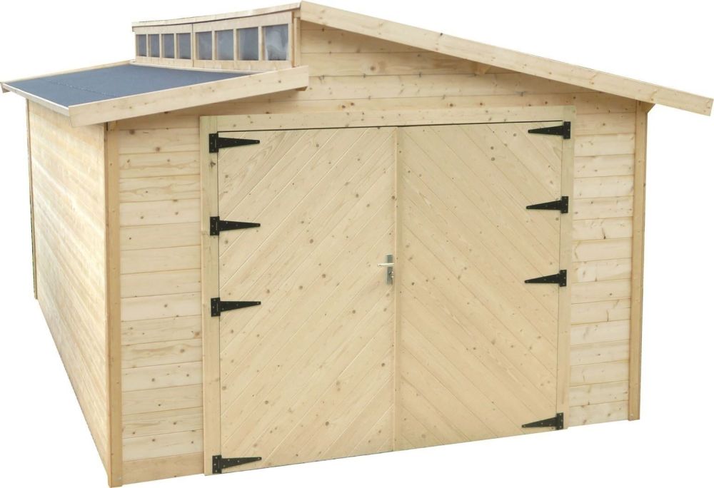 de garage torino met dubbele houten deur,afmetingen: 3600 x 5700 x 2921mm,fundament:3600 x 5700mm,opervlakte:20.88m2,binnenoppervlakte 20.06m2,wanddikte 28mm,type dak:zadeldak met zwarte roofing,oppervlakte:onbehandeld te behandelen 45m2,gratis levering aan huis
