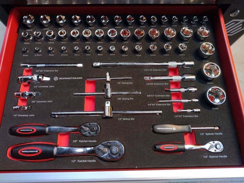 | gereedschapswagen met 6 laden waarvan 4 gevuld met gereedschap. Nieuw in doos |