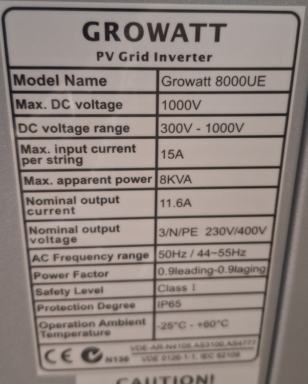 | Naam: | Growatt 8000UE Omvormer – 8kW – 3-Fase PV Grid Inverter (Nieuw in doos) |