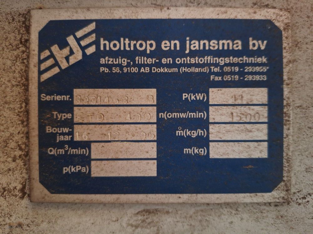 | Naam: | Industriële Afzuiginstallatie / Filterunit - Holtrop en Jansma |