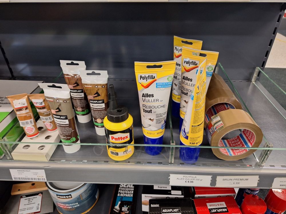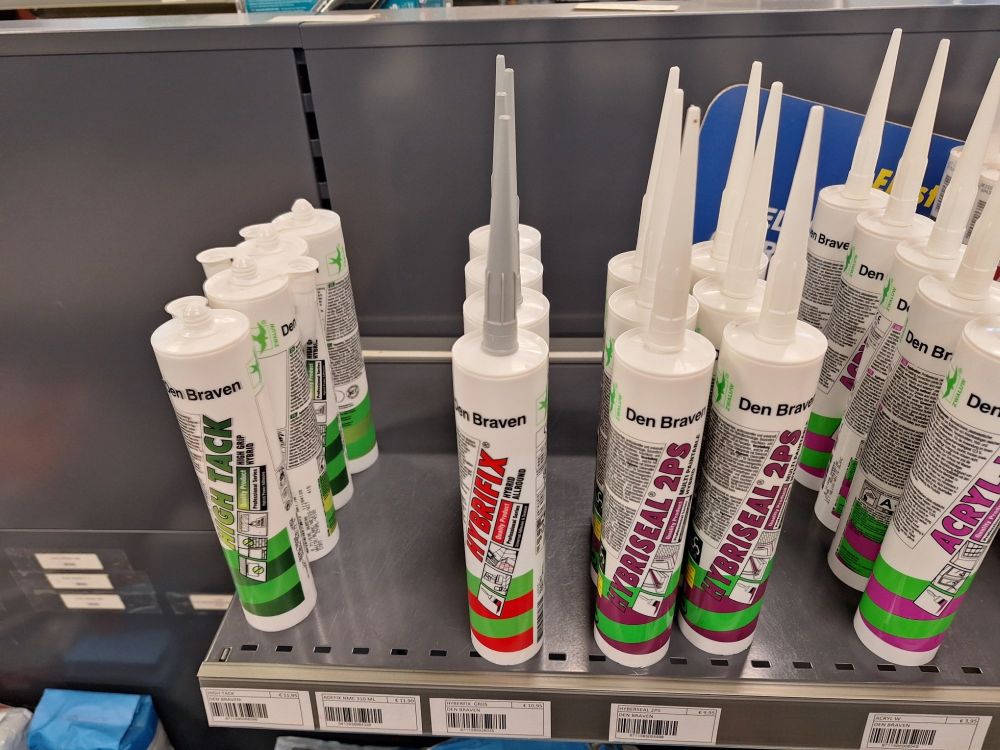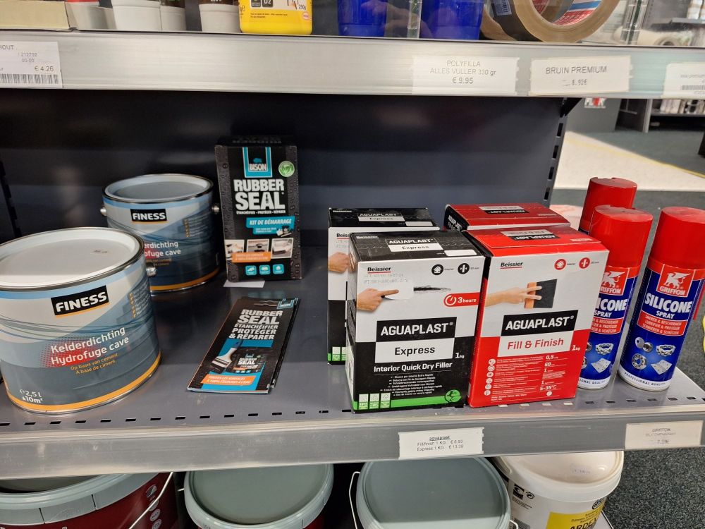 | Naam: | Inhoud 2 x 2 lm winkelrek (Pleister,siliconen,bigbags,lijmen) |