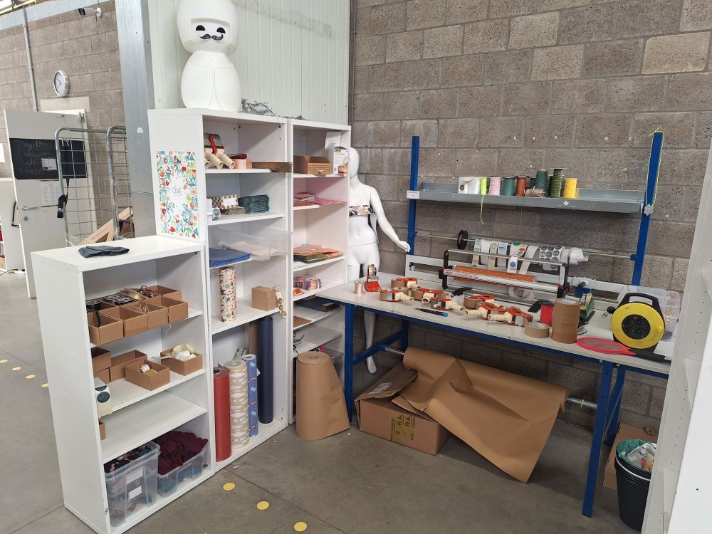 | Naam: | Inpaktafel met geïntegreerd papier,snij en afrolsysteem + legger - incl.inhoud(verpakking en meubilair) |