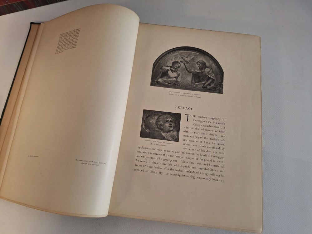 Antonio Allegri da Correggio – His Life, His Friends, and His Time Auteur: Corrado Ricci – Vertaling: Florence Simmonds – Uitgave: William Heinemann, 1896 ➤ Klassiek kunsthistorisch werk over Correggio, met 37 platen en 150 illustraties