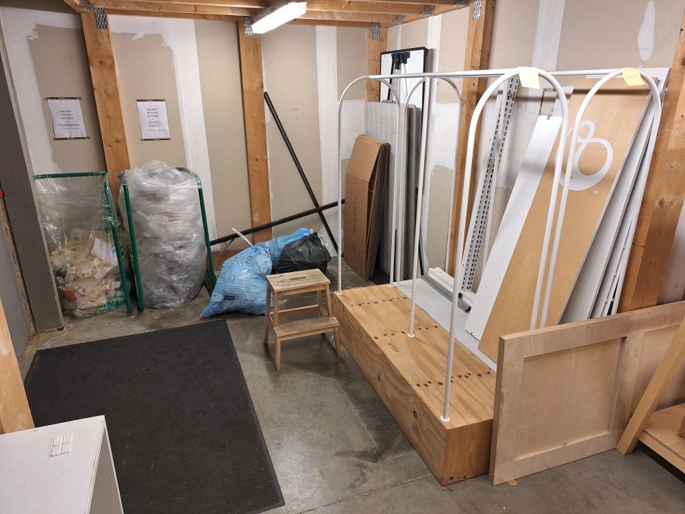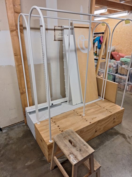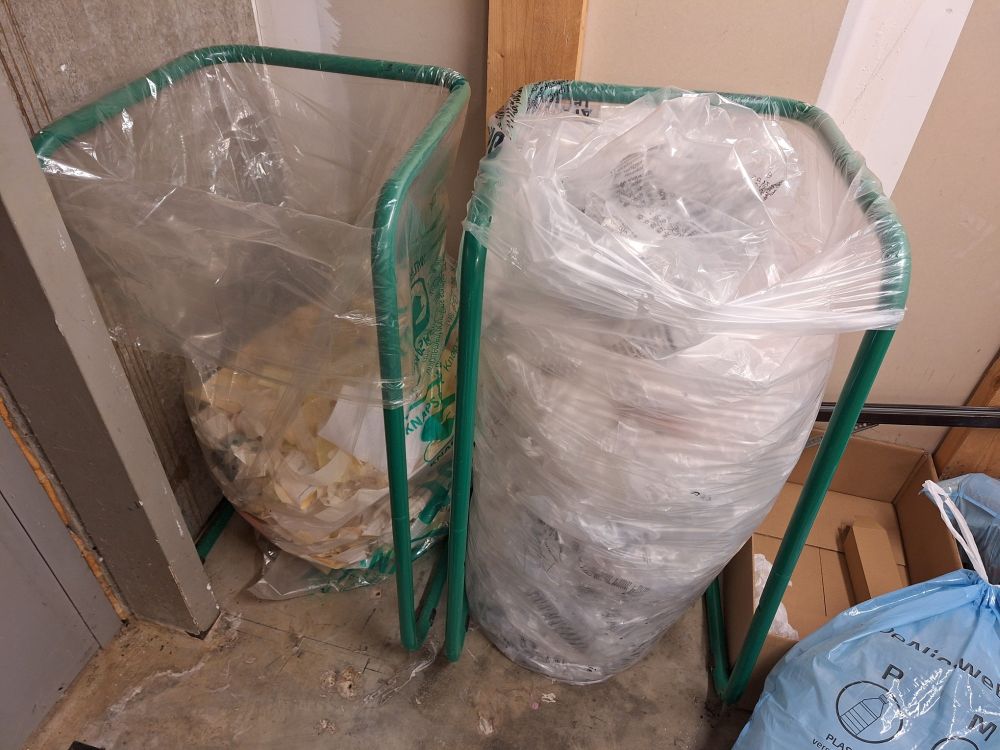 | Naam: | Lot met 2 kledingrekken,2 metalen afvalzakkenhouders en presentatiebord |