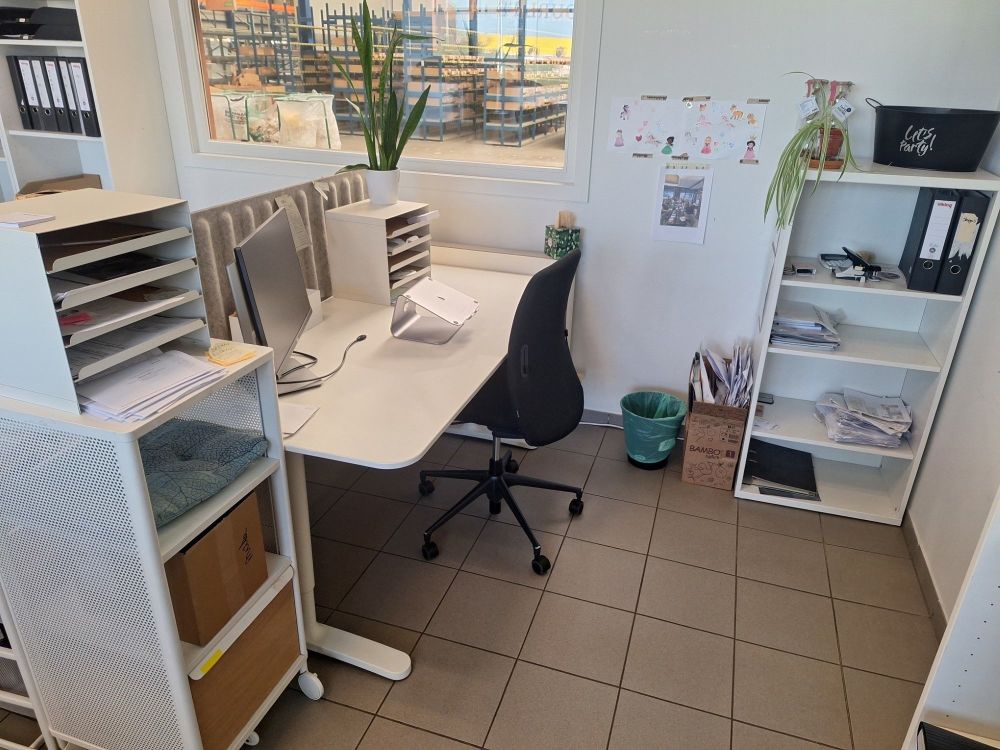 | Naam: | Lot met bureau,stoel,monitor,toetsenbord,muis,2 witte kasten incl.inhoud |