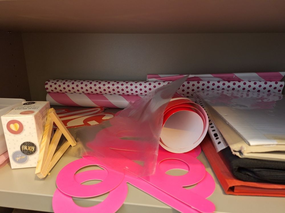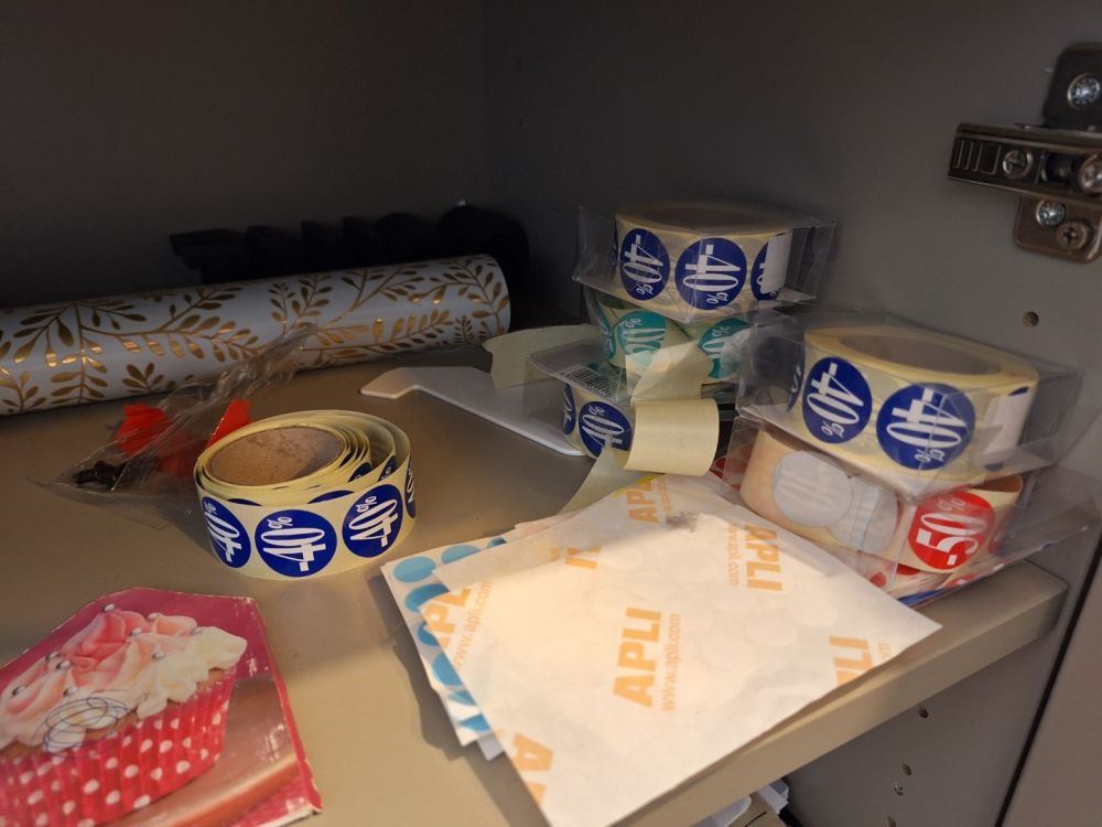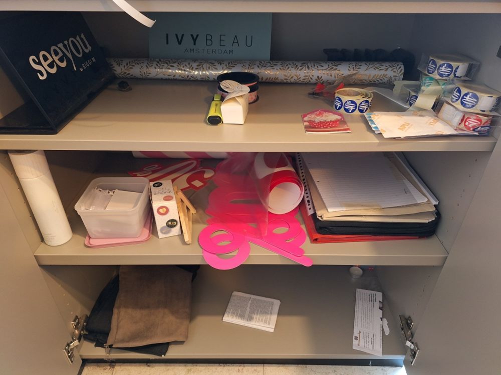 1 x bureauaccesoires (plakband,schaar,vuilemmer,lint,uurwerken,betaalterminal)