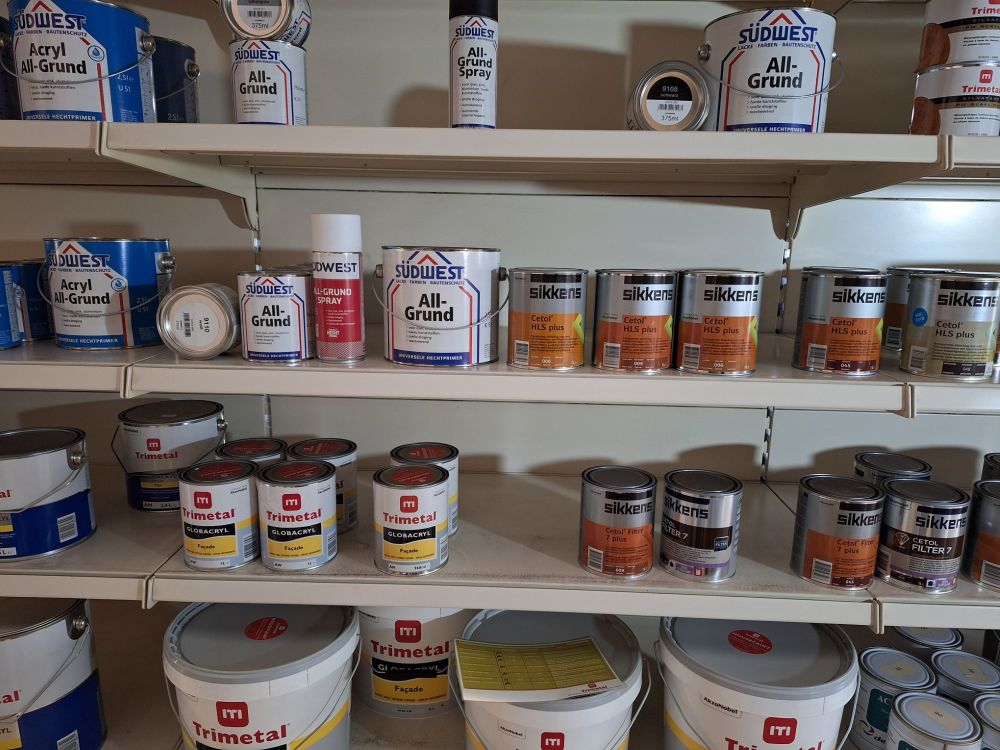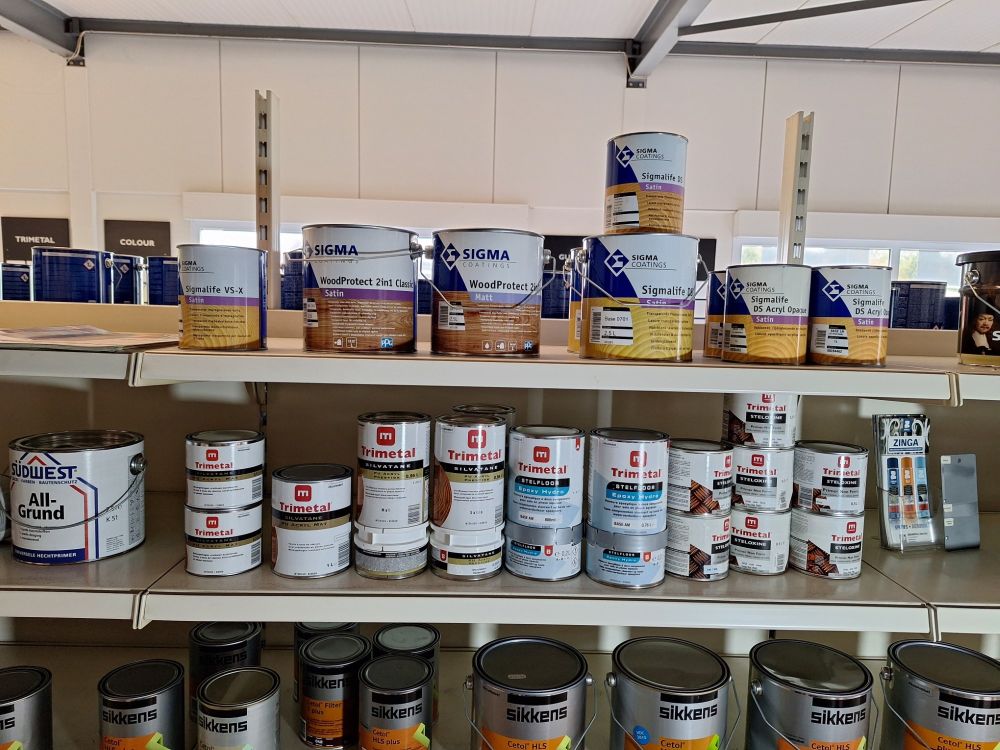 | Naam: | Lot professionele verfproducten en primers – Sikkens, Sigma, Südwest, Trimetal, Zinga, TRAE LYX (enkel inhoud rek) |
