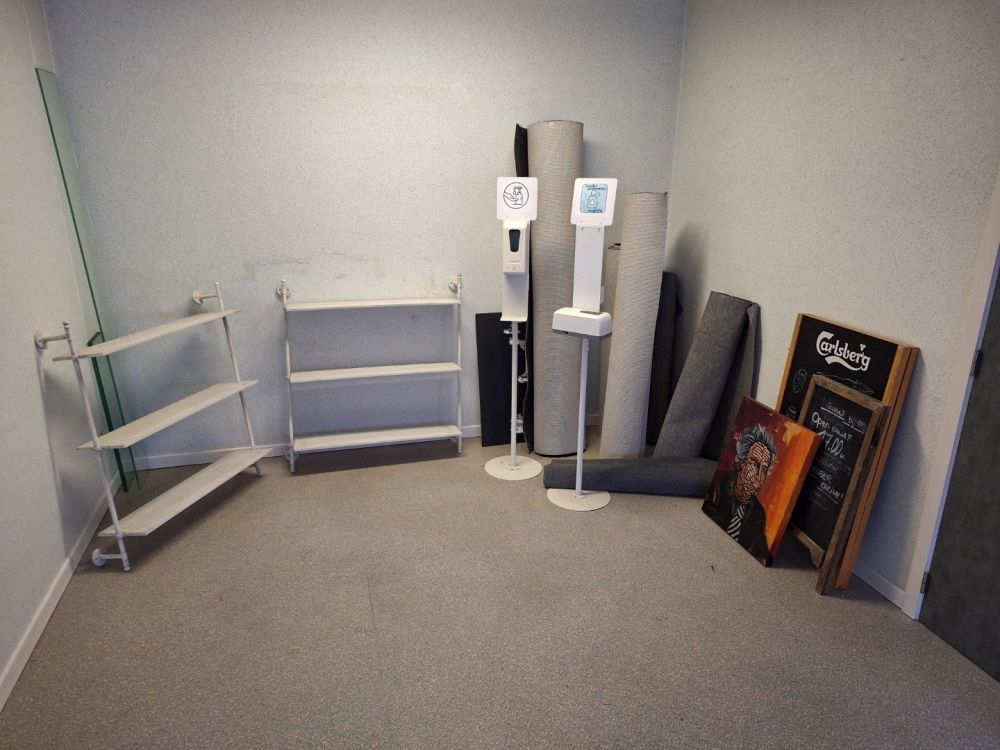 | Naam: | Lot stoepborden,wandrekken,tapijten en alcoholdispensers op voet |